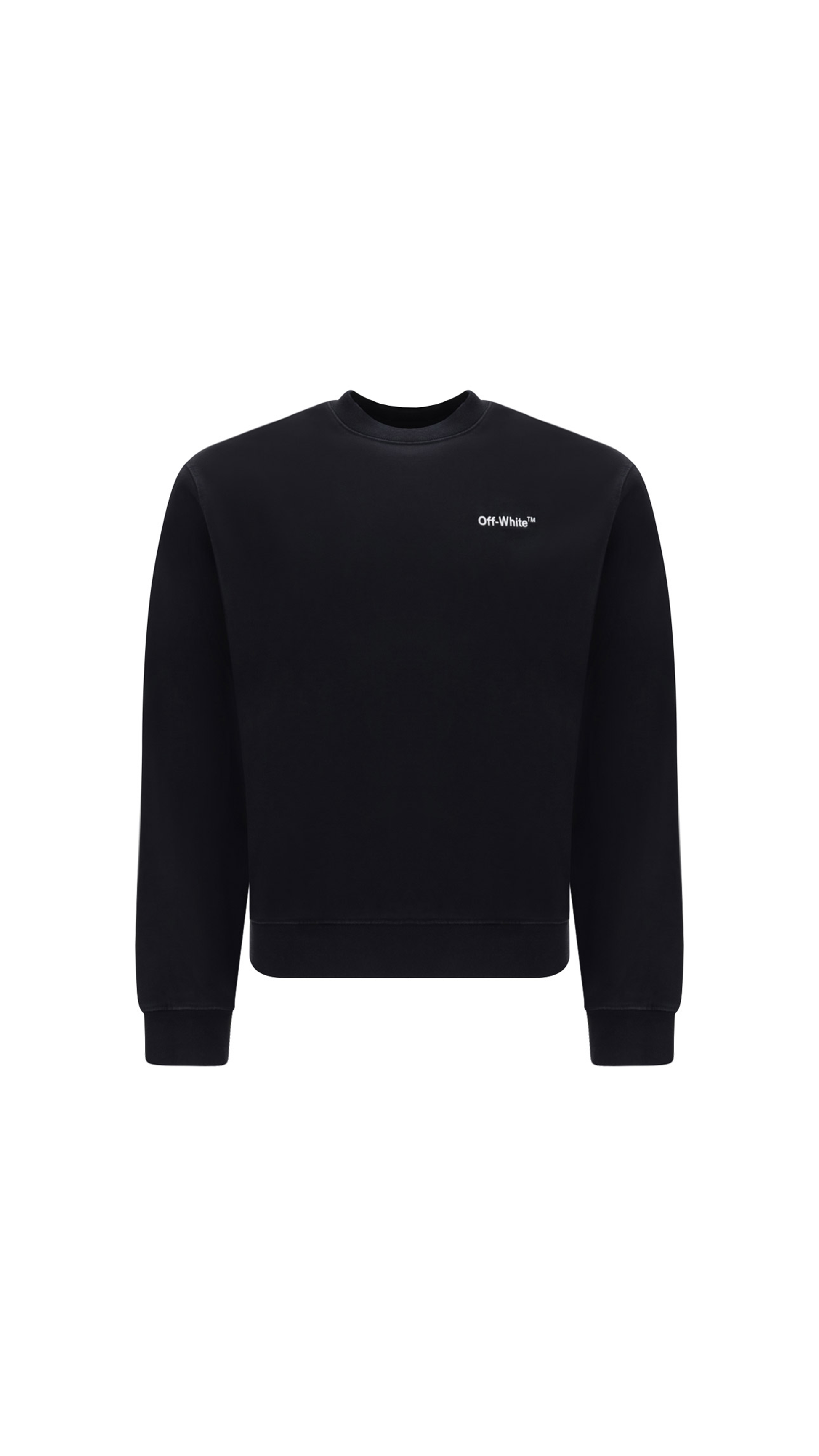 men's cotton Sweatshirt by Off-White, ribbed crew neck, iconic brand monogram applied in contrast on front, ribbed cuffs, ribbed hem.