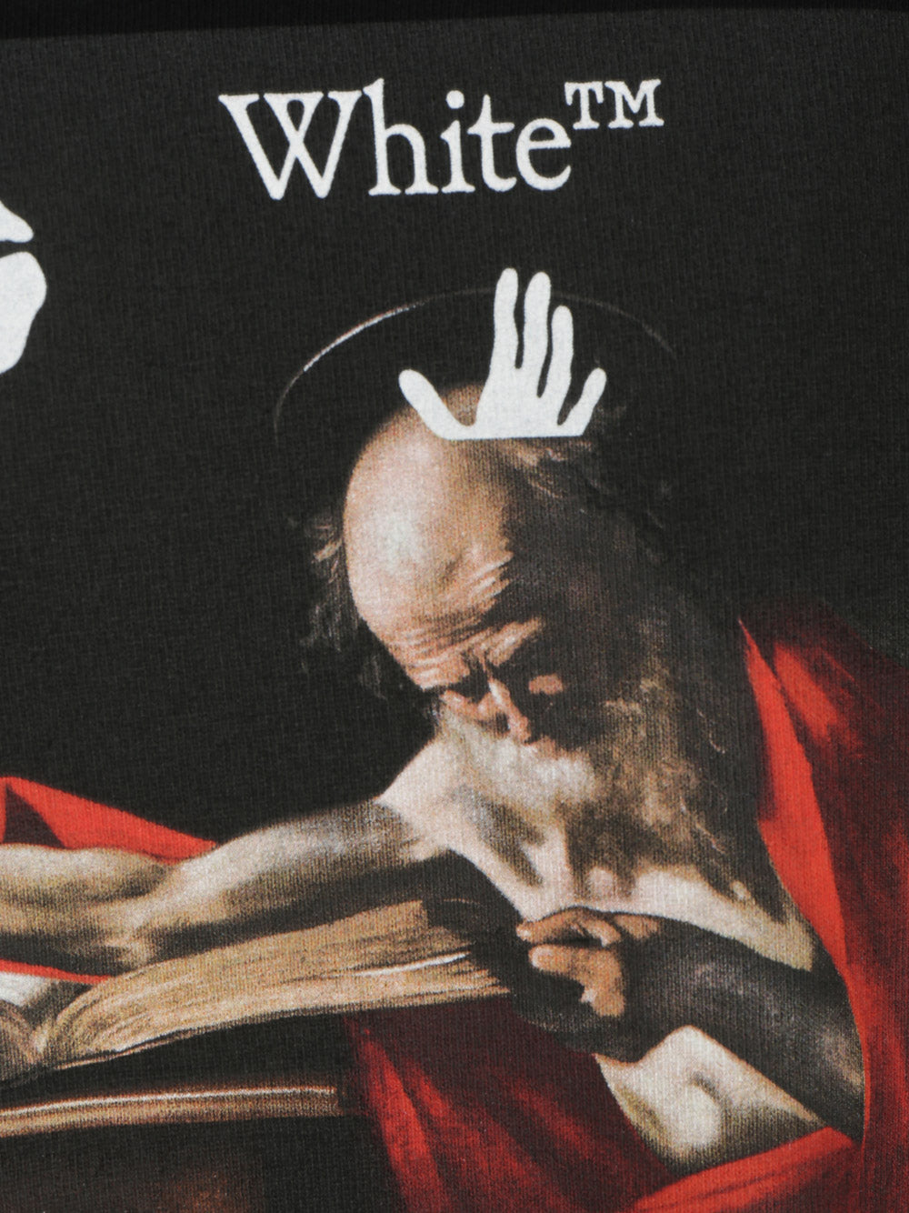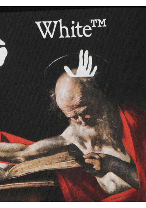 Cotton T-Shirt by Off-White, iconic contrasting brand monogram on front, maxi print on back with Renaissance painting and brand signature, oversize fit.