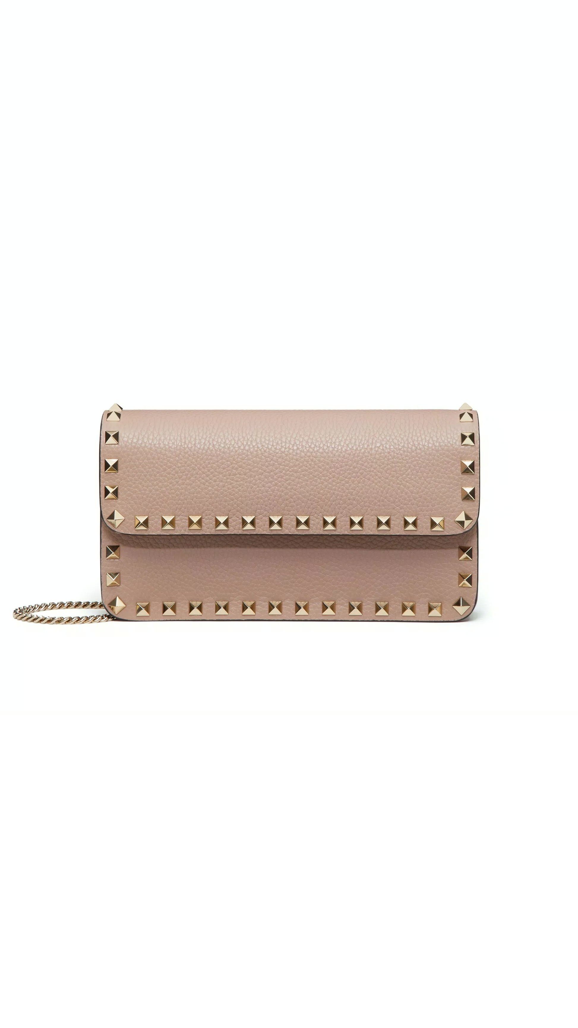 Rockstud Grainy Calfskin Chain Pouch - Poudre