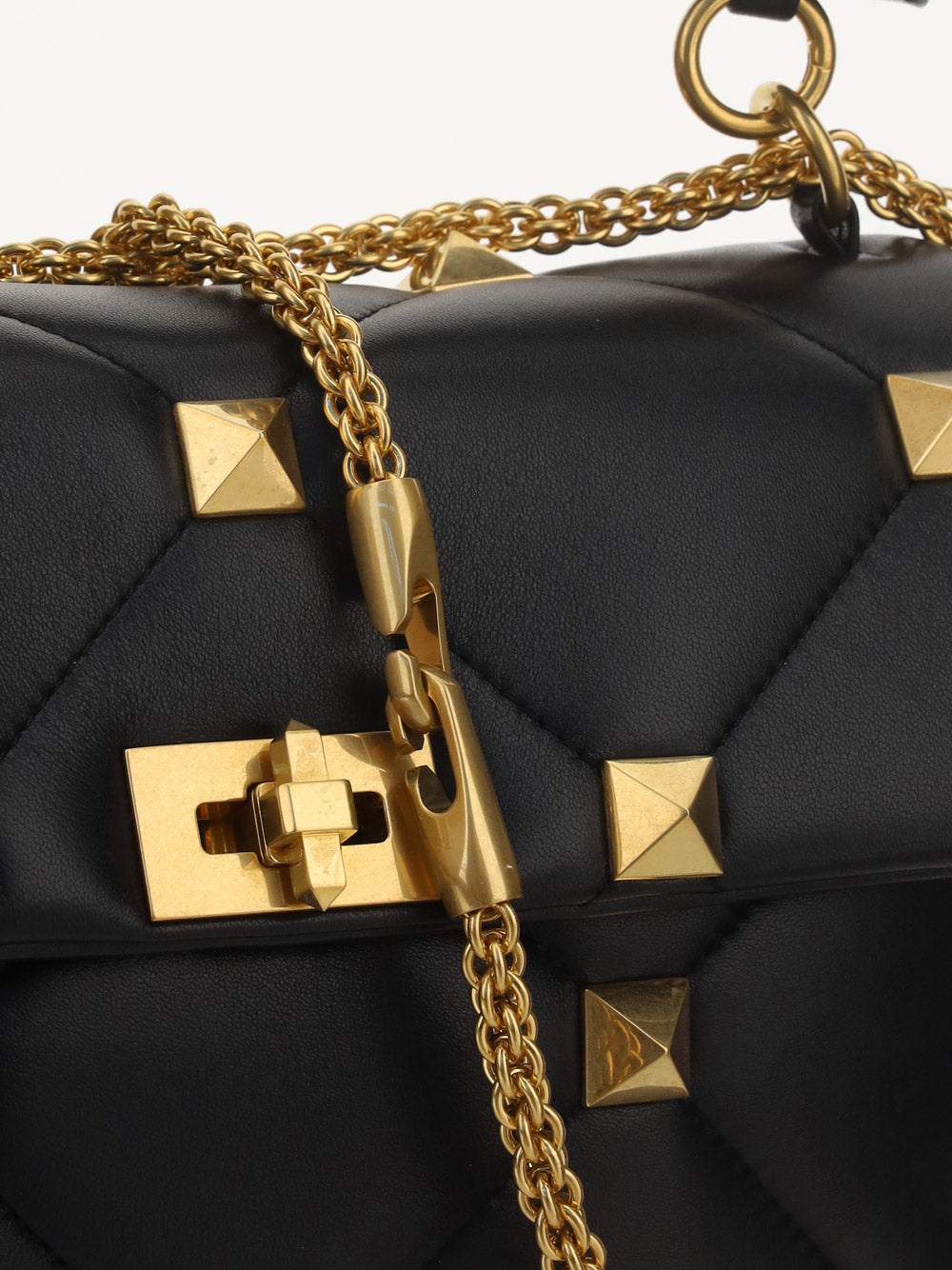 Large Roman Stud the Shoulder Bag in Nappa With Chain - Black